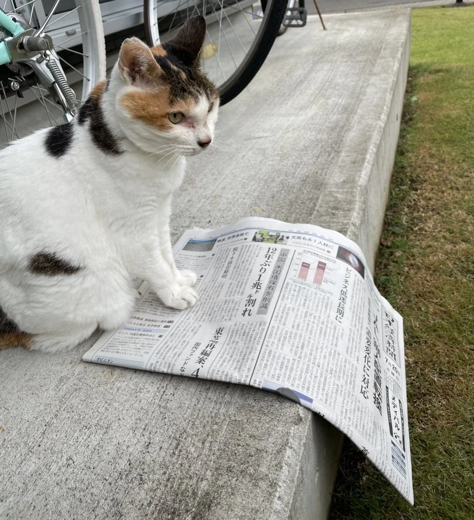 My morning routine could not commence without first feeding and watering Miichan. And once that was underway, I would make coffee and go get the paper and return to the living room and immediately have Miichan on my lap, not liking but tolerating the movements and sounds of Nikkei broadsheets above her tiny head.