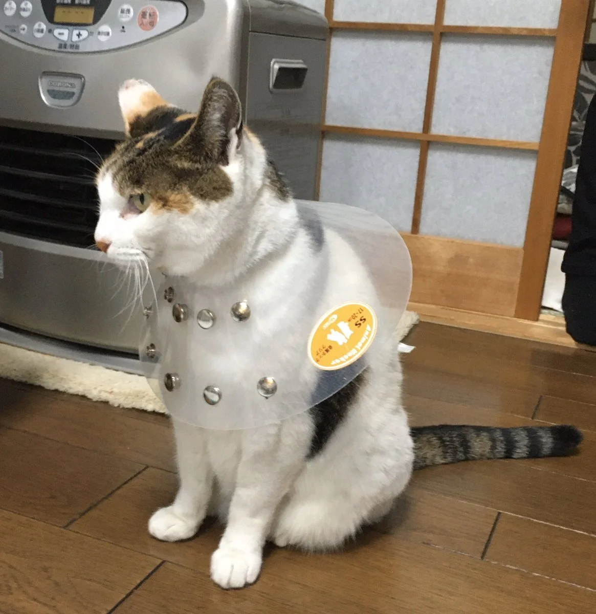 So every stage of my life since I was 25 included memories of Miichan. All the family gatherings at the in-laws' home were ultimately Miichan lovefests. Every New Year's. Every hina matsuri. Every summer barbecue and visit to say hi. She provided the personality leaven that kept my in-laws sane with just the two of them living there. In her they had a constant subject to discuss. Anytime we visited we were regaled with accounts of her lizard or rodent conquests and consumption, and fights with other cats, some of whom were suspected of being her siblings. There were also accounts of her tangling with larger foes, including a large tanuki who nearly ended her back around 2019. For that she received a chest injury and wore the ubiquitous cone of shame.